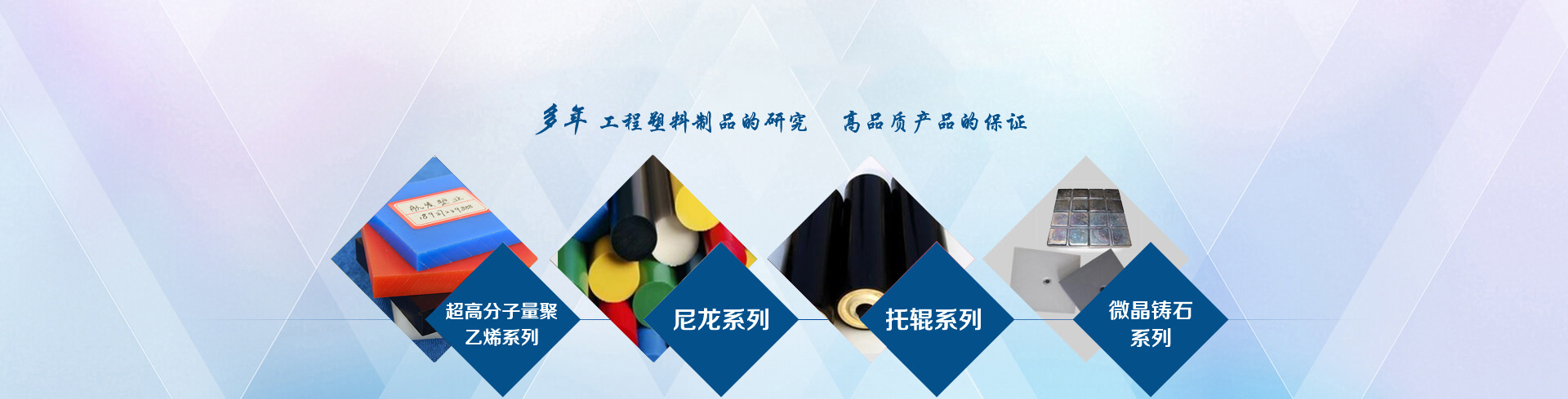 公司以生產超高分子量聚乙烯(UHMW-PE)為主的系列產品。主要產品有超高分子量聚乙烯板材、棒材、管材、異型材、尼龍板材、尼龍托輥、微晶板、鑄石板等產品。